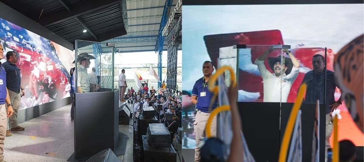 Desde ahora, todas sus intervenciones políticas se realizarán detrás de un atril cubierto con vidrio blindado, una medida de seguridad que ya fue implementada de manera oficial en la ciudad de Villavicencio.